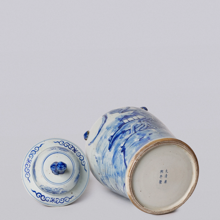 Elevate your space with our exquisite River Landscape Porcelain Temple Jar. This stunning blue and white jar features a serene mountains and rivers pattern, bringing a sense of tranquility and beauty to any room. Add a touch of traditional elegance and nature's beauty to your home decor.