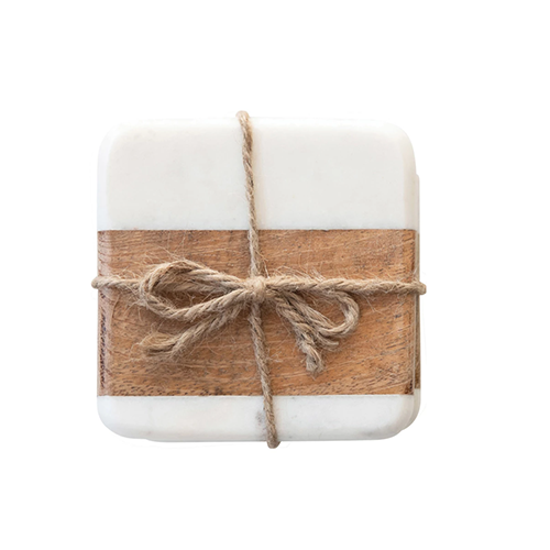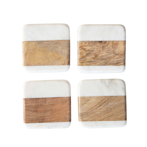 This set of 4 marble & acacia wood coasters are a fun touch to add to you bar ware. Perfect for any drink to rest, they will add a nice mix of textures to the table.