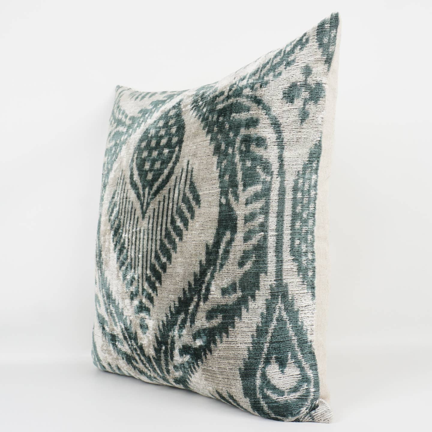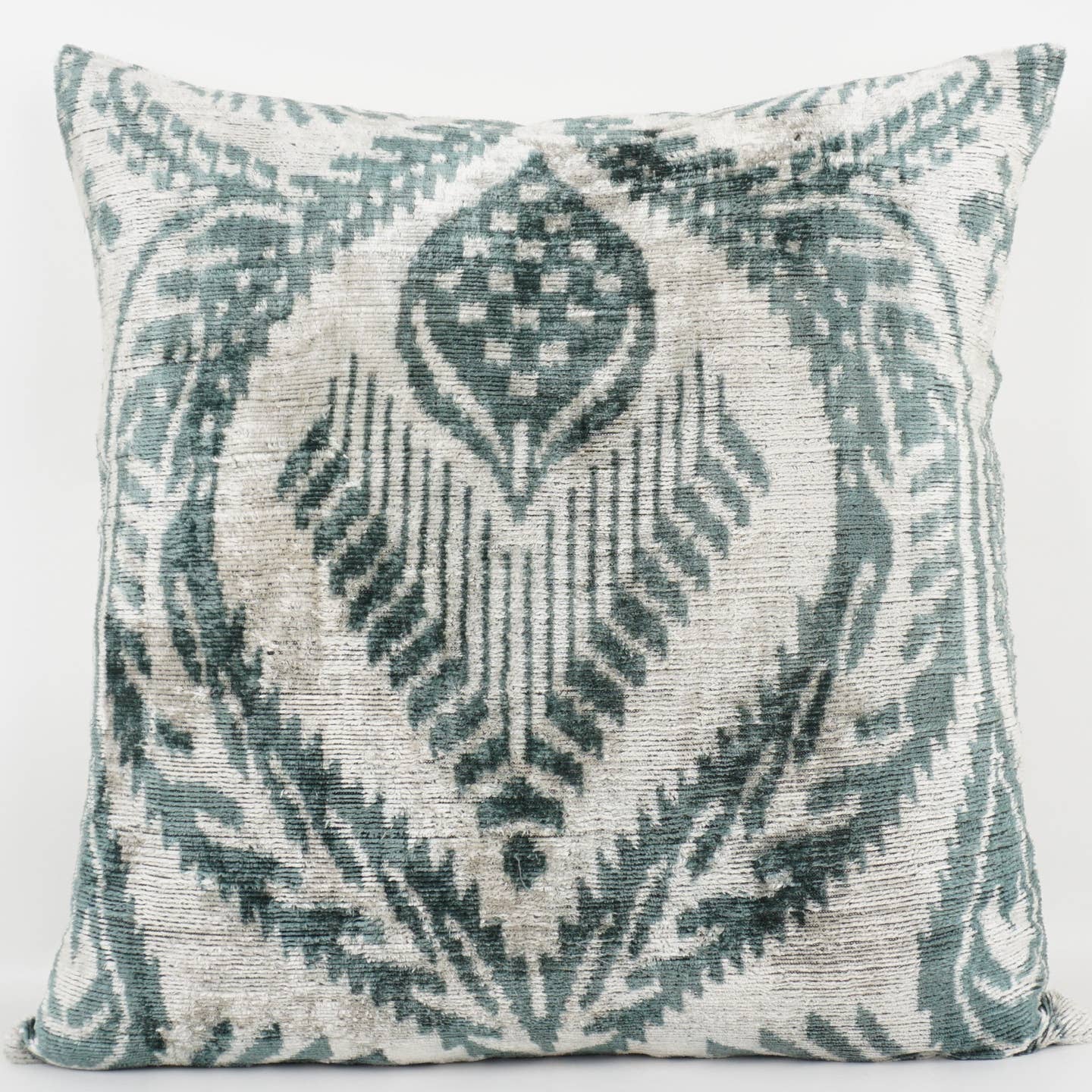 Elevate your home decor with this stunning blue and white handwoven pillow, crafted from luxurious ikat silk and plush velvet. Its unique blend of rich colors and textures adds warmth and sophistication to any room. Experience the perfect combination of artisanal craftsmanship and comfort—an irresistible accent that transforms your space effortlessly.