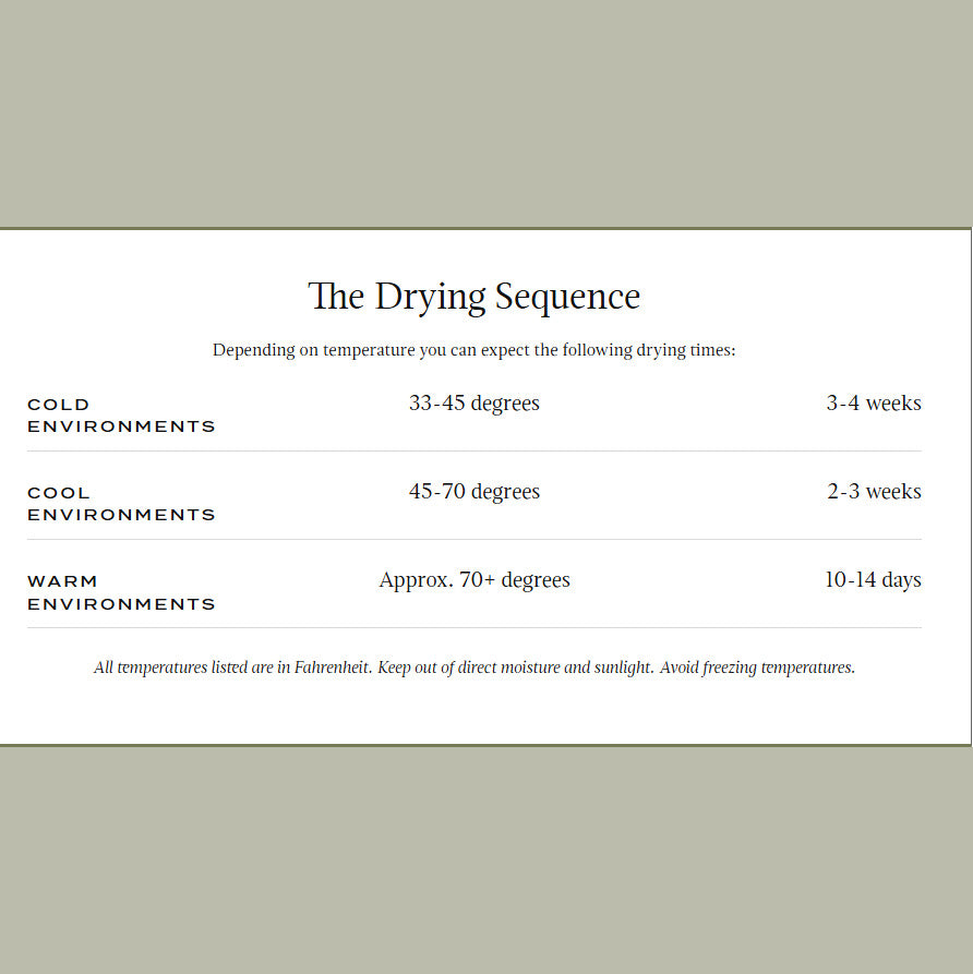 Once dried, your wreath can be used for future seasons. We recommend removing any fresh greens (cedars and firs) and then place in the sturdy two piece gift box provided. Be sure to place in a temperature controlled room.