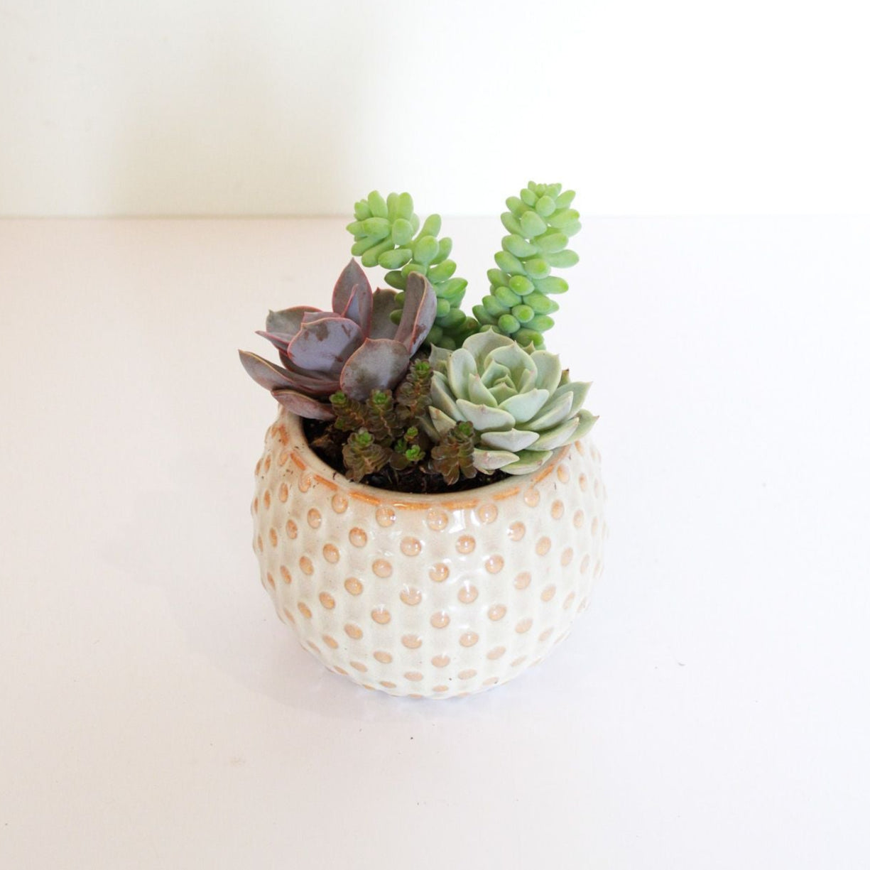 Elevate your space with our Dotted Stoneware Succulent! This elegant pot features delicate dots and is filled with a variety of vibrant succulents. Bring a touch of nature into your home or office and enjoy the calming benefits of these low-maintenance plants.