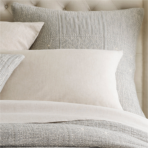 Tender to the touch and soft against the skin, our subtly textured double cloth cotton matelassé is interwoven with a patchwork of artisanal inspired Nordic folkstitch patterns. Laundered and tumbled for lived in homeyness, this bedding has traditional appeal, feeling like a family heirloom, handed down through generations.