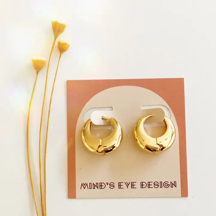 Introducing the luxurious Epais Huggies, featuring elegant gold accents for a touch of opulence. Elevate your style and add a hint of glamour with these stunning earrings. Perfect for special occasions or everyday wear, these Huggies will make you feel like royalty.