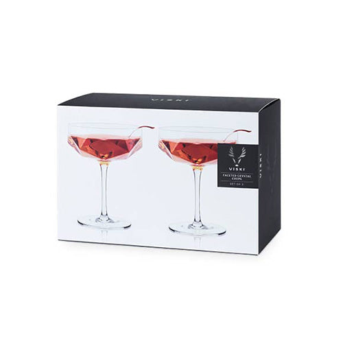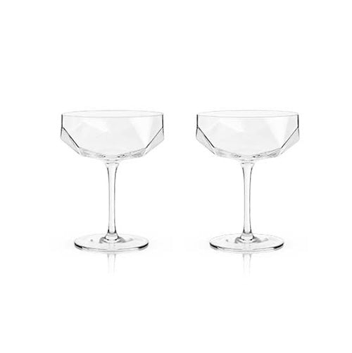 Splitting off from a star-shaped base, trigonal sides make this polyfaceted crystal coupe glass uncommonly captivating. With each face sending prismatic light in splintered rays through your handcrafted cocktail, the glass itself rounds out smoothly as it reaches the rim for the perfect sip! Enjoy!