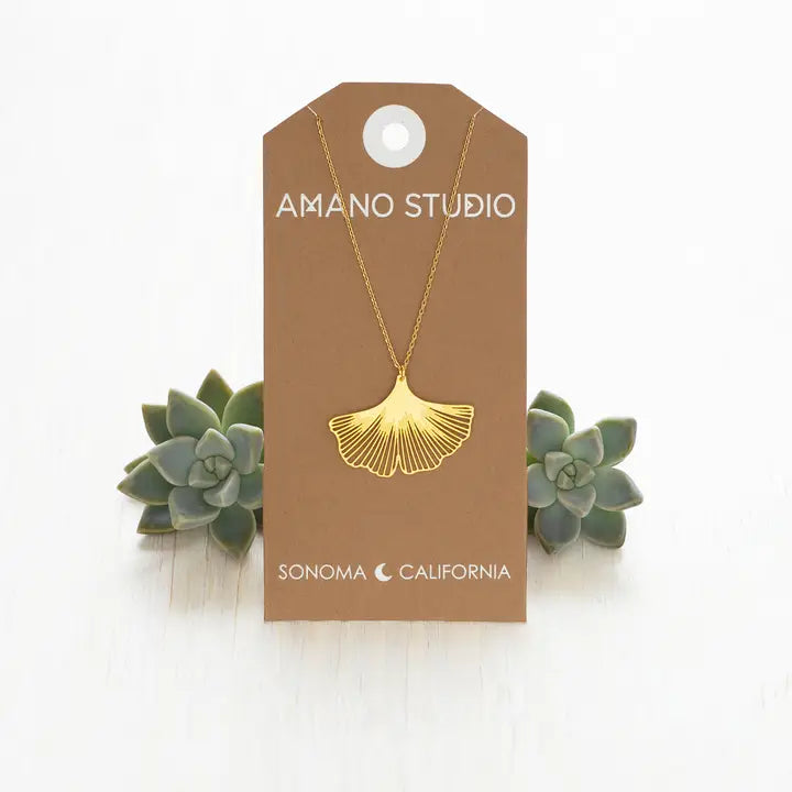 Our customers love the ginkgo leaf! It has been used as a symbol of peace and hope in Asian cultures for hundreds of years. The laser cut brass leaf hangs from a 16" chain with a 2" extender. The chain is 14k gold plated brass + coated to resist tarnish and create a hypoallergenic surface.