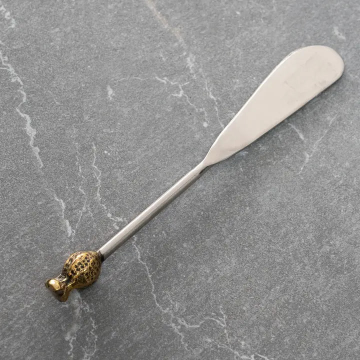 The Gilded Pomegranate Spreader is a stunning addition to your home serverware collection. Crafted from high-quality stainless steel, this spreader is not only durable but also exudes elegance.