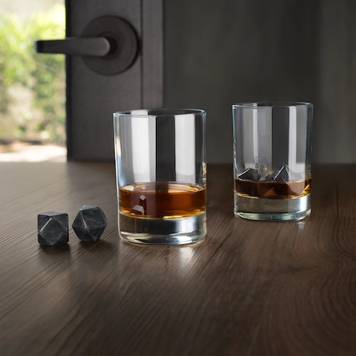 Pour neat drinks directly over our Hexagon Glacier Rocks to keep libations ice cold and uncut! Polished black basalt brings an unfettered edge to the table, letting you savor full-flavor spirits down to the bottom of the glass. The perfect gift for your favorite whiskey lover!