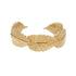 The Hazel Cuff presents a magnificent, natural feel, formed with sculpted leaves which construct an abundant band of gold to captivate the eyes. Intricate leaves crossing. Fabricated from solid brass, this adjustable cuff furnishes a distinguished statement piece you can don for any ensemble.
