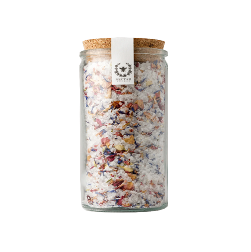 - Ingredients: european sea salt, dendritic salt, rosa canina (pink rose petals), jasminum officinale (jasmine), centaurea cyanus (cornflower)