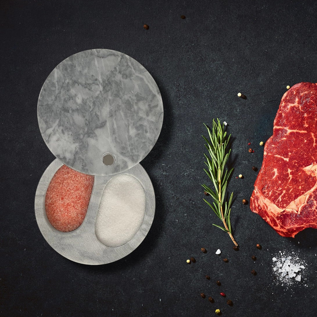 Add a touch of elegance to your kitchen with our Marble Double Salt Cellar! This beautiful and functional piece features a rotating lid, making it easy to access and store salt, herbs, spices, and sugar. Keep your ingredients fresh and organized while adding a sophisticated touch to your cooking experience.