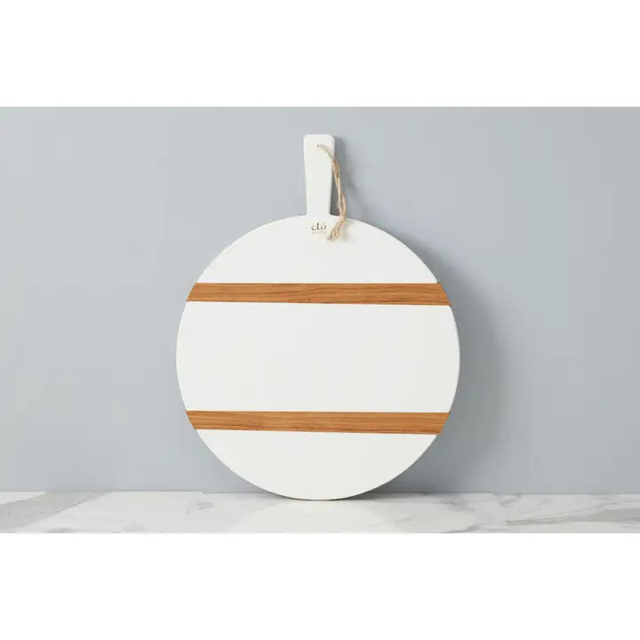 Elevate your charcuterie spreads! Our White Round Mod Charcuterie Board is perfect for serving appetizers, cheese boards, and so much more. Features a white, eco-friendly wax coating to protect the board from bacteria and warping. You'll love this elegant kitchen accessory!