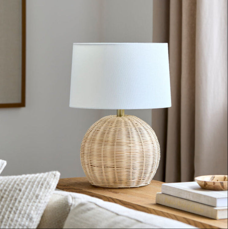 Elevate your space with our Melange Lamp! Crafted with a stylish rattan body and topped with a soft white linen shade, this lamp exudes a warm and inviting ambiance. Perfect for adding a touch of natural charm to any room, while providing soft lighting for a cozy atmosphere.