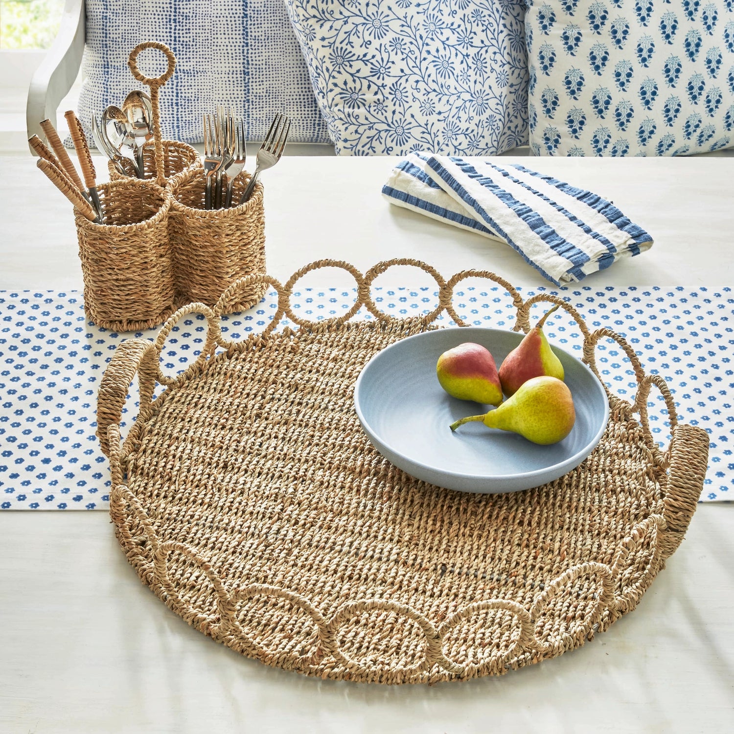 Add natural texture to your home with our handwoven seagrass tray. Made with love by skilled artisans, it's perfect for serving or displaying your favorite items from the coffee table to the entryway. Natural seagrass and iron frame ensure both style and durability.