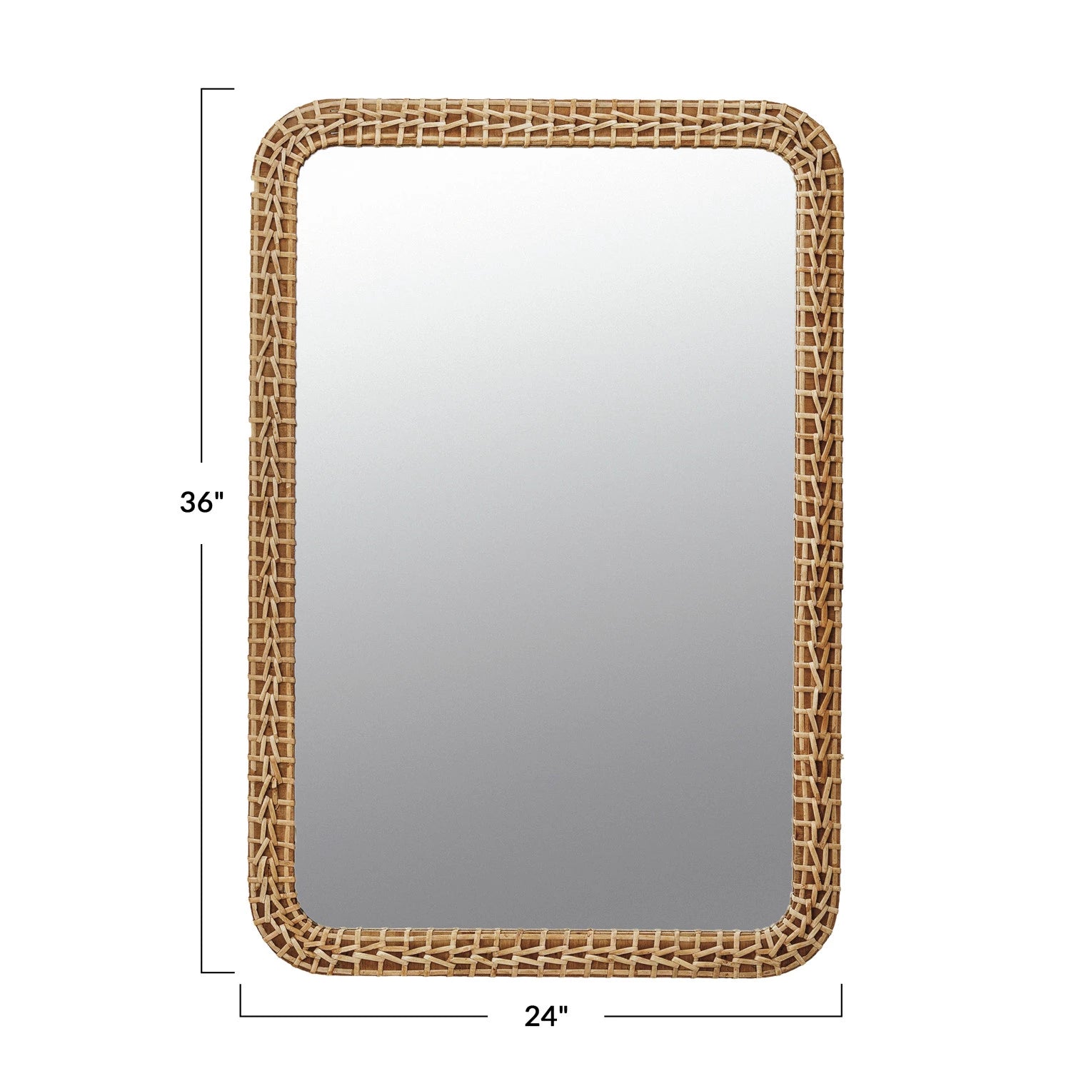 Enhance your home decor with our Natural Woven Rattan Framed Mirror! Crafted with high-quality rattan, this unique mirror adds a touch of natural warmth to any space. Its elegant design and sturdy frame make it a beautiful and functional addition to your home. Elevate your living space with this stunning, hand-crafted mirror.