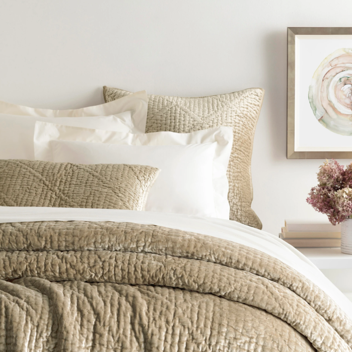 Love at first touch, you will melt at the hand feel of this sublimely soft-to-the-skin scrumptious sham. Relaxed and inviting, double diamond Kantha quilted cotton velvet. Layer on the romance, with velvet for every season.