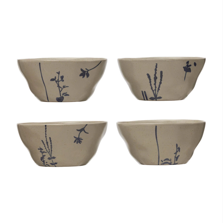 This modern boho set of stoneware bowls showcases hand stamped botanical design. Curate a space that reflects your unique sense of style with intentionally designed home décor.