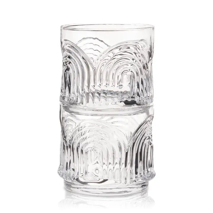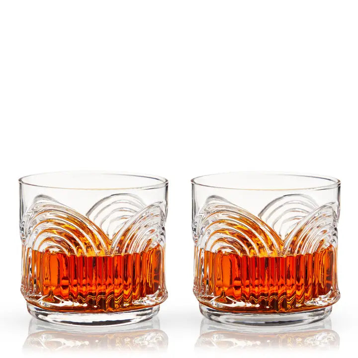 These lowball tumblers are perfect for a generous Double Old Fashioned or Negroni on the rocks, this stackable barware saves space on your bar cart and adds some Gilded Age style to your glassware collection.