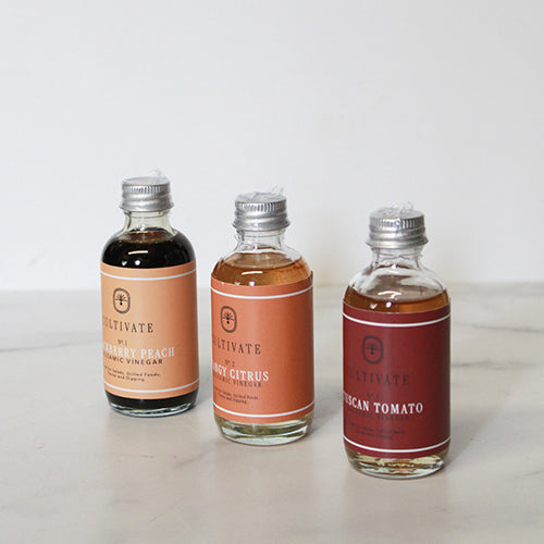 Tangy Citrus: Aged white balsamic vinegar brightened with fresh limes and grapefruit, infused with garlic, cilantro, and jalapeno.