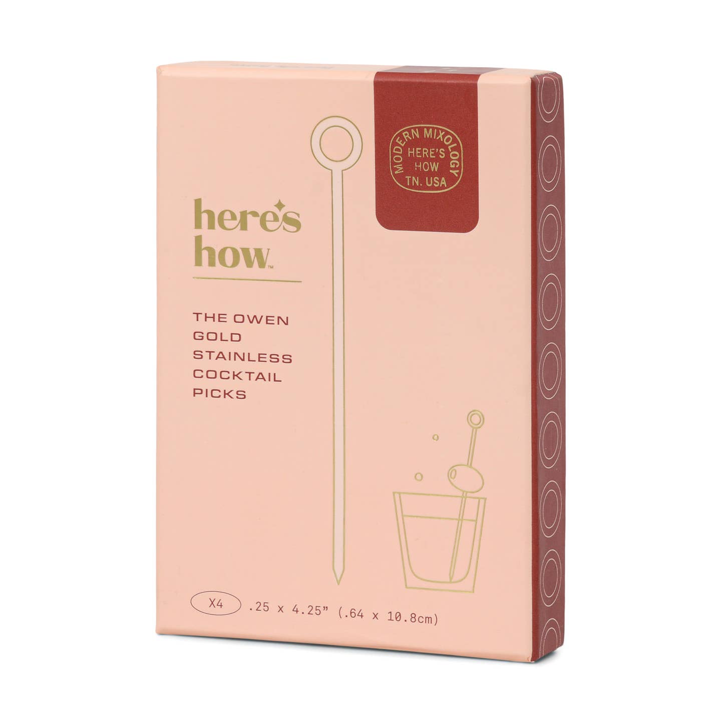 Elevate your cocktail game with these exquisite gold Owen Cocktail Picks. This set of four elegant garnish tools adds a touch of sophistication to any drink presentation. Perfect for spearing olives, cherries, or citrus twists, these luxurious picks transform ordinary beverages into impressive creations. An essential accessory for your home bar that will impress guests and enhance your entertaining experience.
