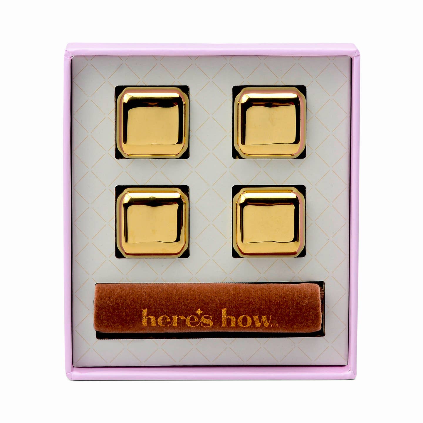 Keep your cocktails perfectly chilled without dilution with these exquisite Ruby Gold Cocktail Chillers. This set of four premium stainless steel chillers features a stunning gold finish with rich ruby accents, adding luxury to every sip. Simply freeze before use and watch as they maintain your drink's ideal temperature while preserving its full flavor profile.