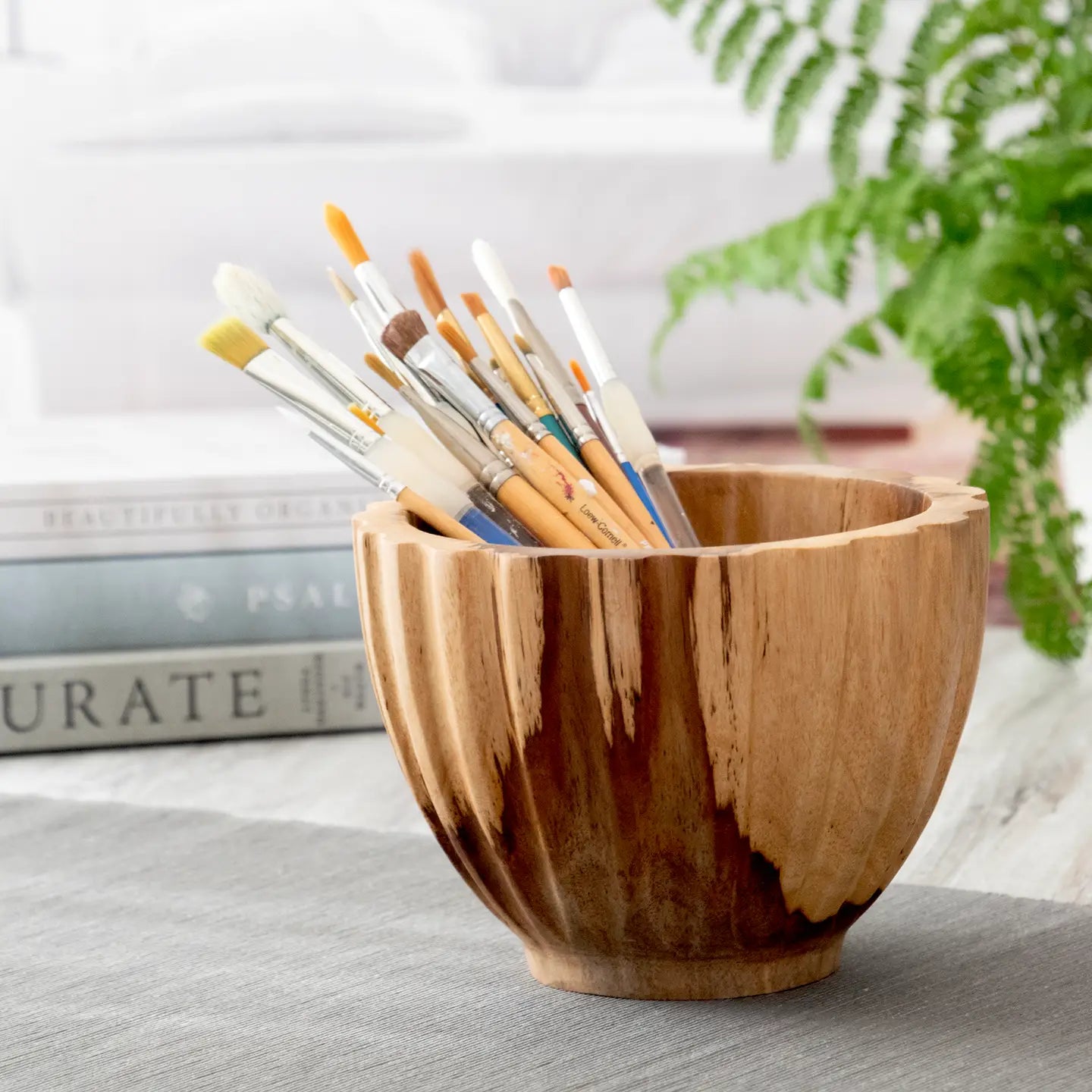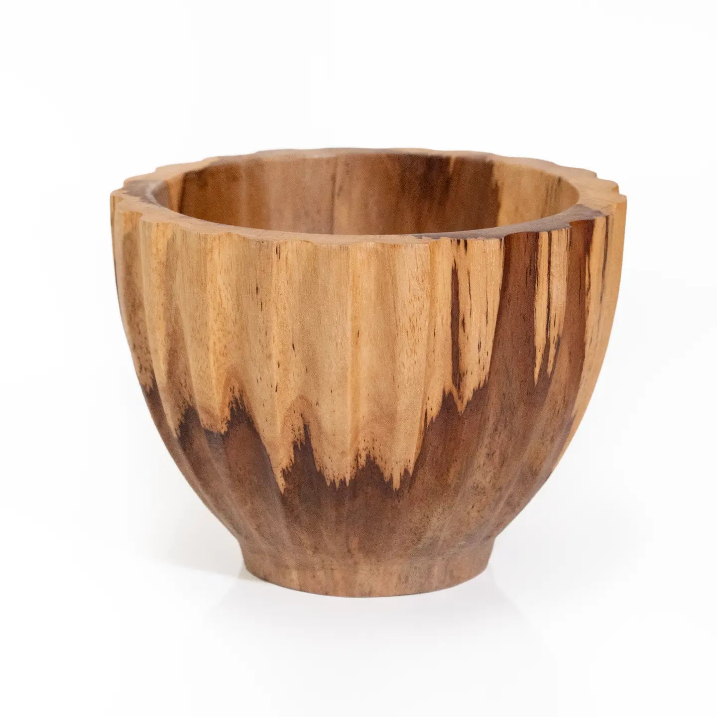 Carved in a beautiful scalloped edge pattern and made from gorgeous natural teak wood, our Scalloped Teakwood Medium Bowl is imported from Indonesia and is perfect for a variety of home decor uses, especially collecting all your odds and ends! There are slight variations from one to the next in colors and finish, which make these truly unique and one of a kind.