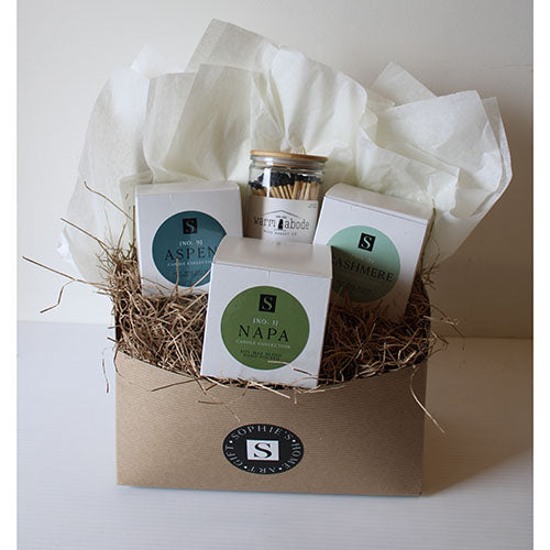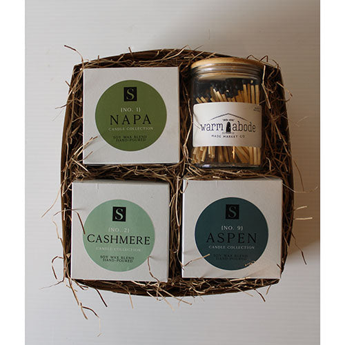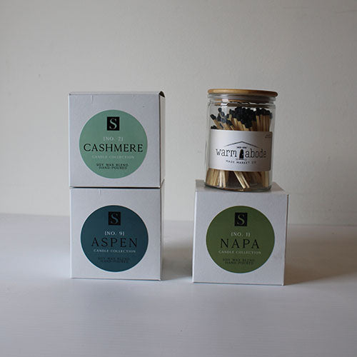 Our Candle Trio will bring you a sensory escape! Illuminate your home with the warm scents of Napa, Cashmere, and Aspen candles. With this trio, your space will be inviting and comfortable. Plus, it comes with complimentary matches to light them up with ease!