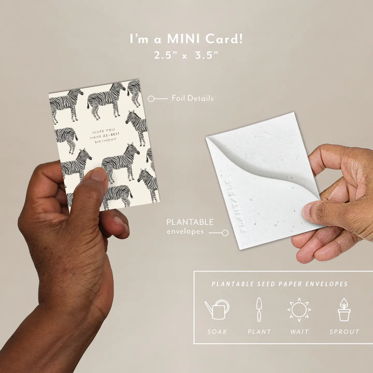 Meet the newest little sprout! Think all the goodness of our full size greeting card but at a petite "mini me" and super cute enclosure card size. All Seedlings sprouts have foil details and a plantable seed paper envelope which is embedded with wildflower seeds.