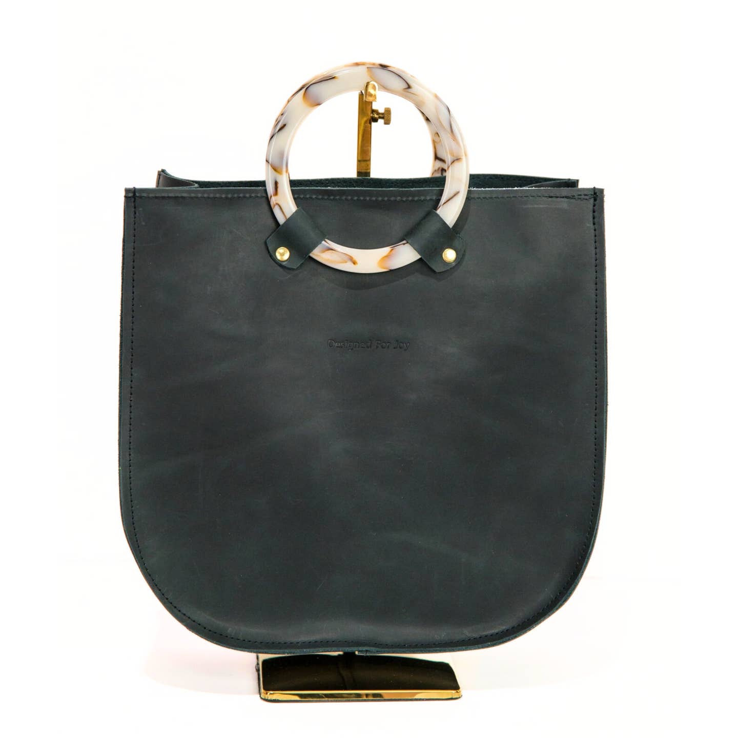 Experience luxury redefined with our Black Leather Ring Handle Tote. Meticulously handcrafted by skilled artisans, this premium tote features a distinctive distressed, soft waxed finish that only improves with age. The sophisticated ring handles add both contemporary style and carrying comfort. Perfect for the discerning customer who appreciates authentic artisanal quality.