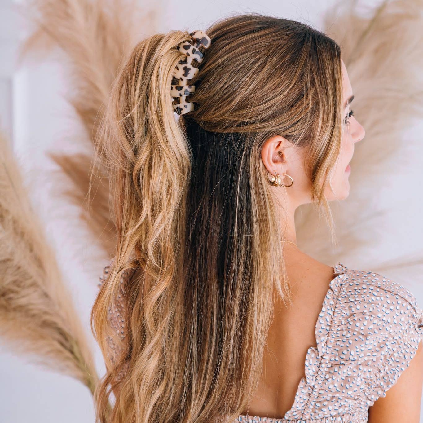Elevate your look with our Medium Blonde Tortoise Classic Hair Clip. This versatile accessory effortlessly secures half-up styles or adds a sophisticated touch to any hairstyle. The timeless tortoise pattern complements all hair colors while providing reliable hold without snagging. Transform your everyday look with this essential styling piece.