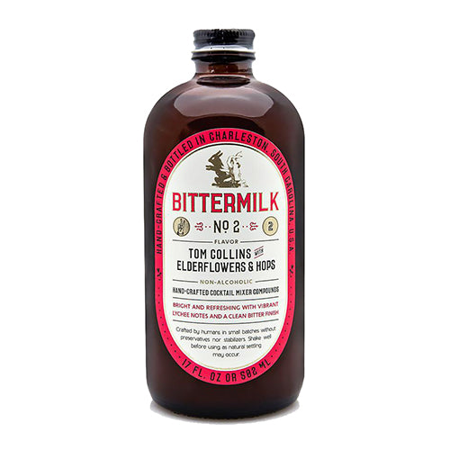 Bittermilk’s Tom Collins with Elderflowers & Hops Cocktail Mixer. Perfect for those who fancy a delicious cocktail with gin and/or vodka. Mixes best with light spirits. Build equal parts Bittermilk Tom Collins cocktail mixer + gin or vodka in a glass with lots of ice. Top with soda water.