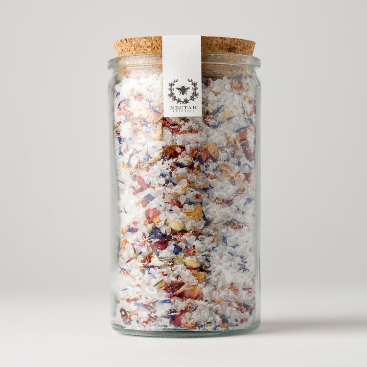 • Ingredients: european sea salt, dendritic salt, rosa canina (pink rose petals), jasminum officinale (jasmine), centaurea cyanus (cornflower)