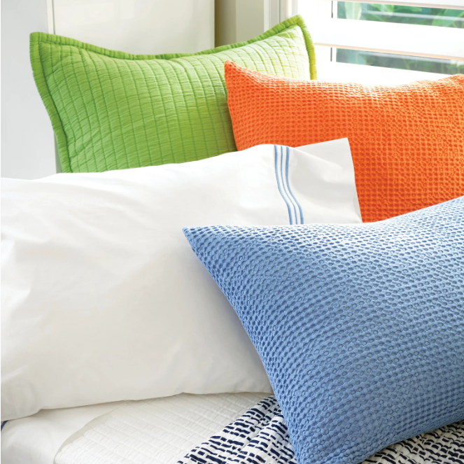 For the ultimate in self-care, dress your bed with our cotton waffle-weave sham. Relaxed and inviting with a delightful frothy texture and heavenly hand feel. Matelassé woven in Portugal for a satisfying heft. Generously sized and beautifully tailored. Stonewashed and tumbled to buttery soft, laundered comfort.