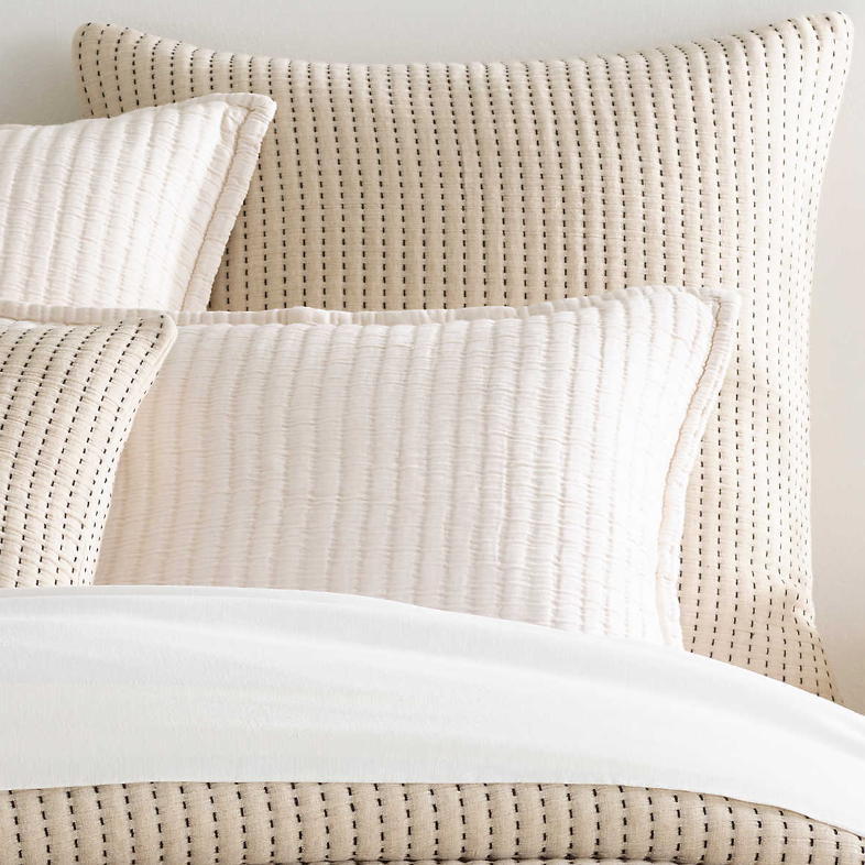 Precisely crafted pick-stitch accentuates the yarn dyed cotton jacquard of this reversible matelassé coverlet and matching sham. The double layer delivers lightweight warmth and a soft hand. Reverses to a solid back. Crafted by artisans committed to fair-labor practices.