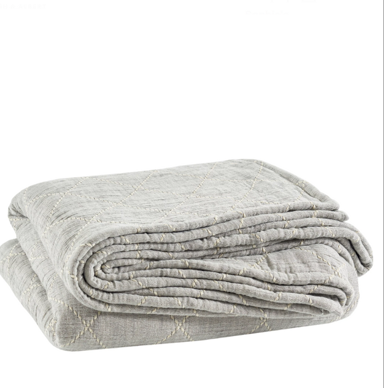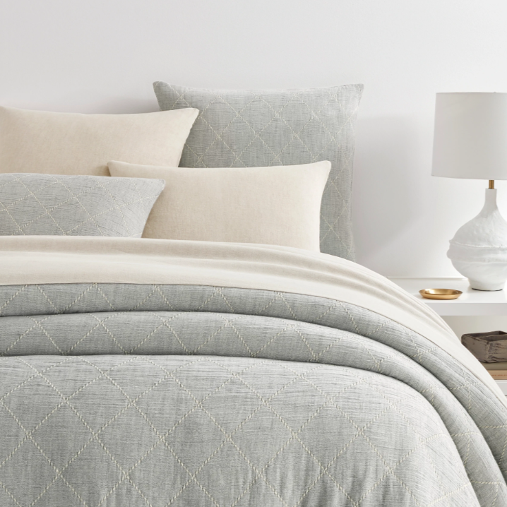 This 100% cotton reversible matelassé is notable for its sophisticated diamond pattern. Made on traditional looms in a centuries-old mill in Portugal, it's soft, warm, and welcoming.