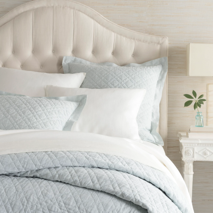 Capture linen's timeless appeal with this casually elegant modern take on the classic quilt. Lush linen and a thin layer of batting add up to the perfect extra layer for transitional spring nights. Traditional diamond quilting stitch keeps it all together. Laundered linen quilt is washed and tumbled to soft perfection for a relaxed, lived in look.