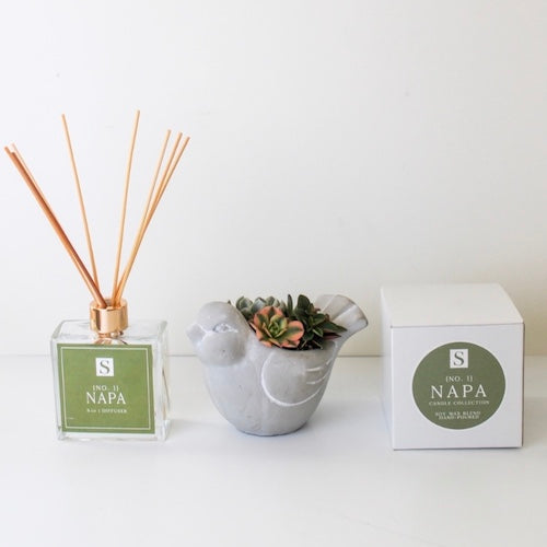 The Luxe Napa + Bird Succulent Gift Box features our beloved succulent, candle & diffuser trio! This gift box features an assortment of succulents in an adorable gray cement pot, along with one of our Sophie's Signature candles + Sophie’s Signature diffusers. Perfect gift for any occasion - birthdays, Mother's Day, showing appreciation, etc - offering that little extra touch to show you care.