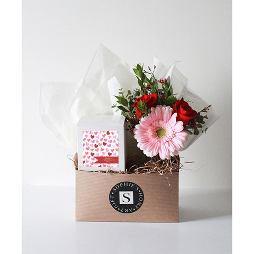 This gift box is a shoppe favorite year after year! Featuring our bestselling Mini Vase Arrangement, this gift includes fresh flowers plus our Sophie's Signature Valentine's Day Candle. The sweetest gift for your Valentine (or Galentines)!
