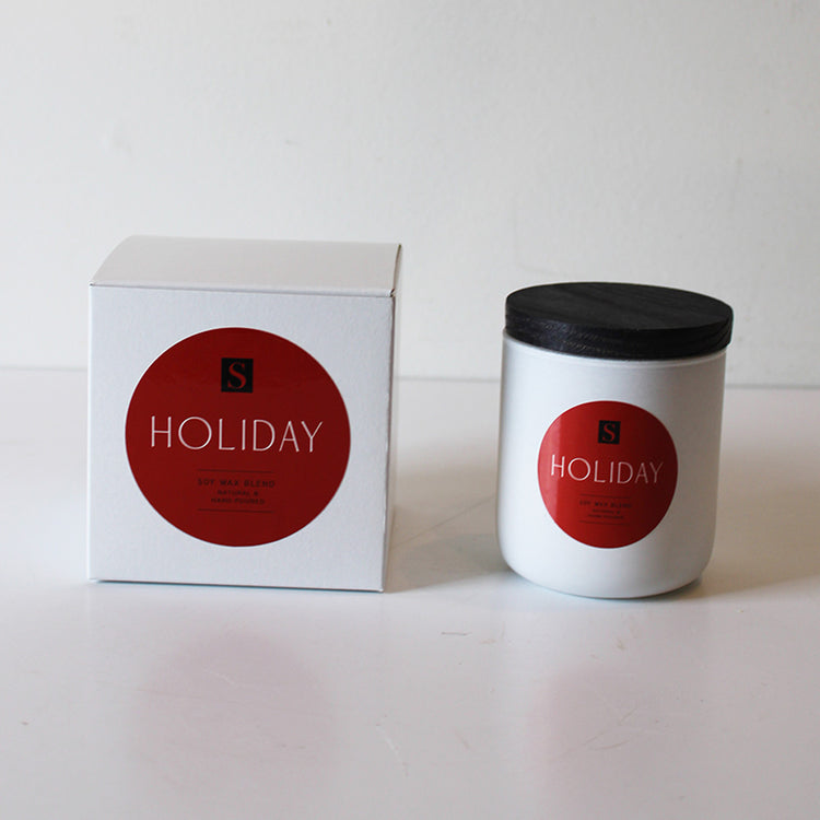 The Holiday Candle is perfect for this special time of year. With notes of cranberry and warm apple cider, this candle evokes a comfortable feeling, making it the perfect transition from fall to winter. We adore this cozy, warm scent!