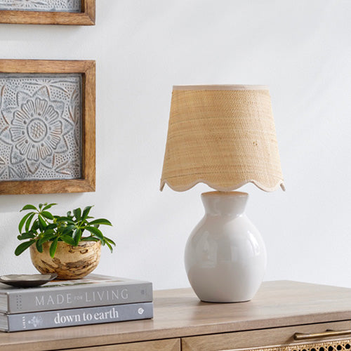 Keep things simple + elegant in any room with the White Stella Diminuta Lamp. Made from beautiful ceramic, this lamp features a unique scalloped shade that adds a touch of sophistication. Perfect for creating a warm and inviting atmosphere, this lamp is sure to inspire relaxation.