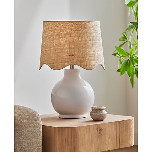 Update your bedside or corner space with our Doheny White Rattan Lamp. The rattan material gives off a warm glow, creating a cozy atmosphere while providing ample bedside lighting.
