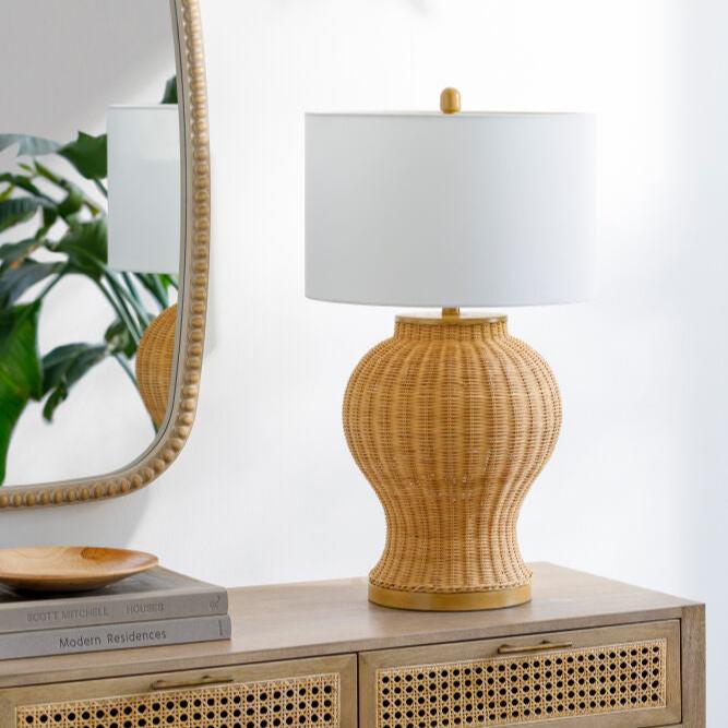 Transform your space with the Ziran Beige Rattan Lamp. Crafted from natural rattan, this lamp exudes warmth and charm. The white shade creates a soft, ambient light, perfect for creating a cozy atmosphere. Elevate your home decor with the beauty and simplicity of the Ziran Rattan Lamp.