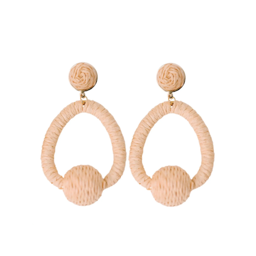 The Raffia Wrapped Pom Pom Hoops are so fun and playful! Lightweight and neutral toned, they’re a perfect match for spring pastels and summer brights!