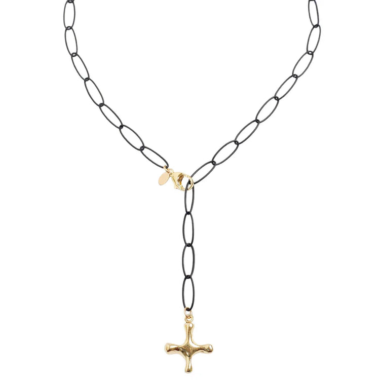 Beautiful hand-sculpted 3D cross charm on an oval link chain. Strikes the perfect balance by combining traditional elements with a modern twist.