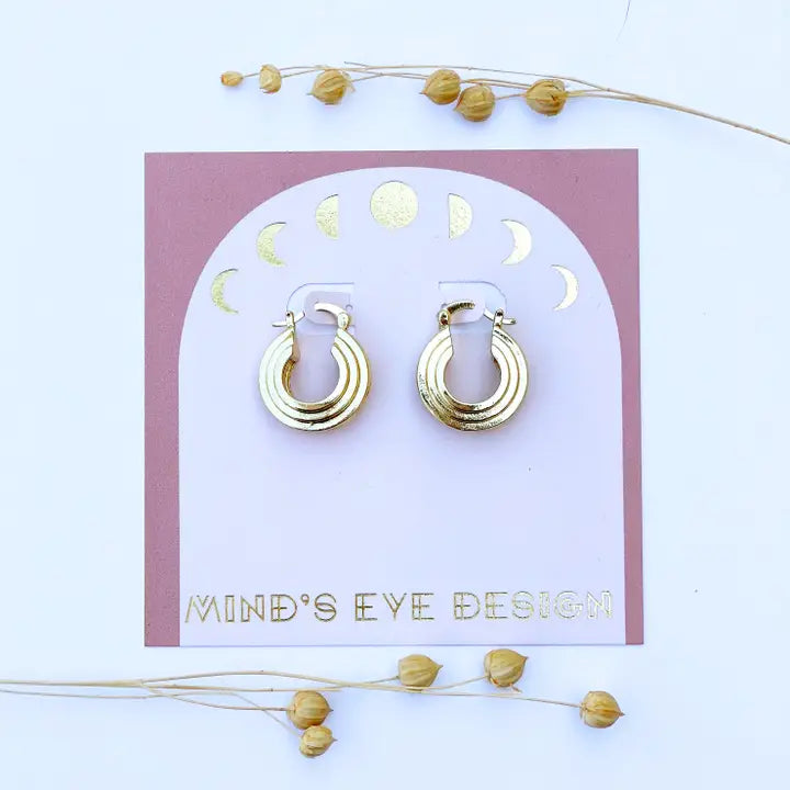Add a touch of elegance to your outfit with Deco Huggies! These gold huggies are designed with intricate deco details, giving you a unique and stylish look. Perfect for any occasion, these huggies will make you stand out and feel confident. Upgrade your jewelry collection with Deco Huggies today!