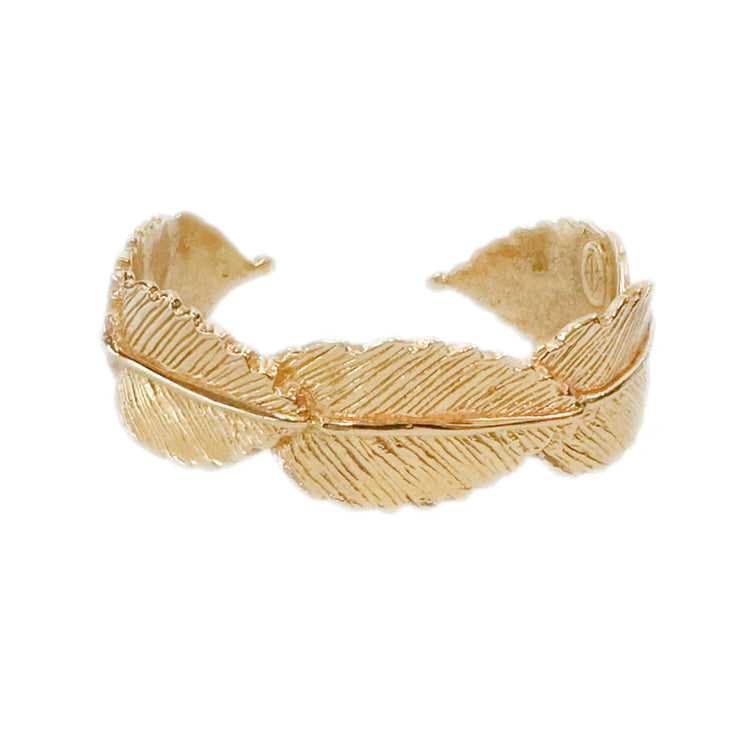 The Hazel Cuff presents a magnificent, natural feel, formed with sculpted leaves which construct an abundant band of gold to captivate the eyes. Intricate leaves crossing. Fabricated from solid brass, this adjustable cuff furnishes a distinguished statement piece you can don for any ensemble.