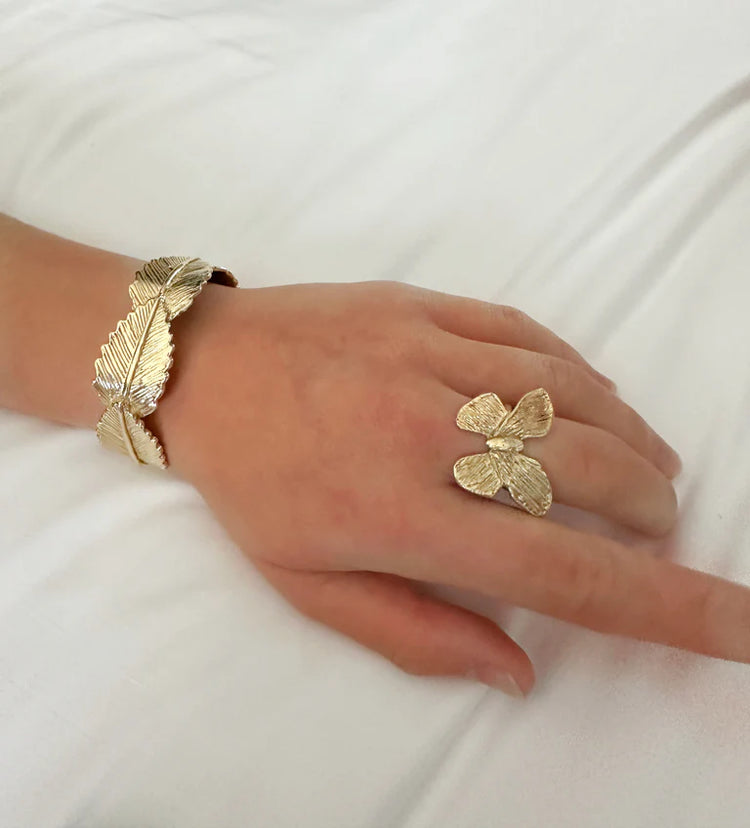 The butterfly is a perfect embodiment of whimsy and charm! So, the Henri ring is sure to capture everyone's attention. Hand sculpted 1" square of shine, grace, and lots of texture.