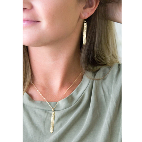 The Jasmine Earrings are delicate bar dangles featuring an intricate vine design. Modern looking from afar and classic when you get closer. These statement pieces are perfect for stacking and sure to dazzle!