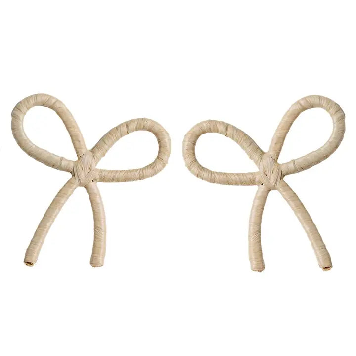 Introducing our warm-weather edition of our bestselling statement bow earrings, now wrapped in vibrant natural raffia for a fresh, beachy look. Lightweight and fun, these earrings are your new go-to accessory for sunny days and tropical nights.