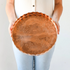 Add a touch of elegance to your home with our Copper Embossed Serving Tray! Made of 100% copper, this tray features a beautiful floral embossed pattern and a scalloped edge. Measuring 12" in diameter, it is perfect for serving a variety of treats, from cookies to cheese and crackers. Elevate your hosting game with this stunning tray!