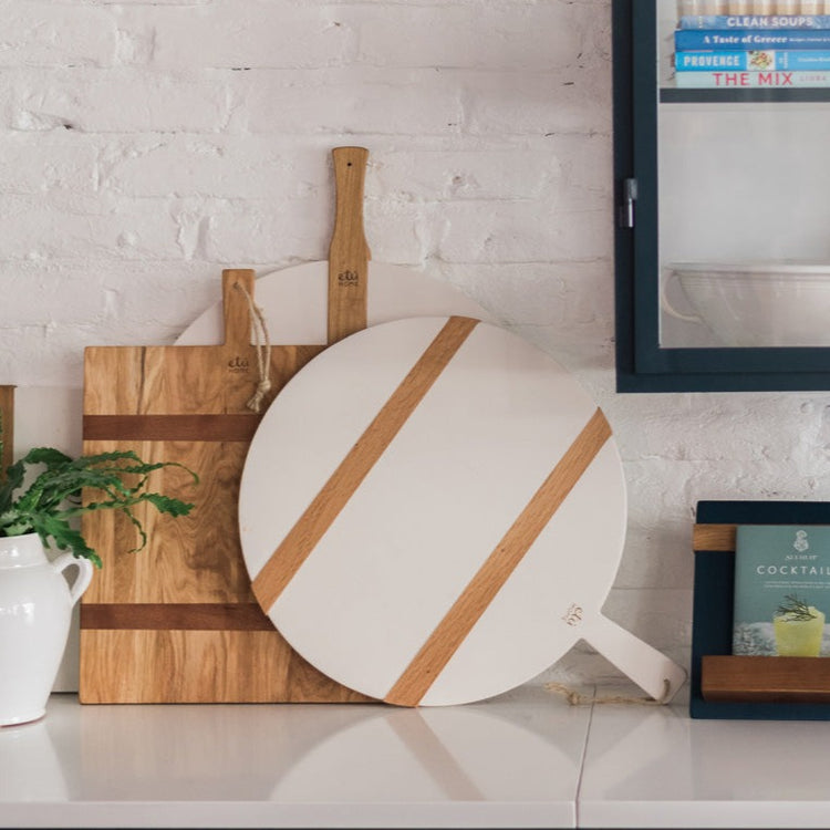 Elevate your charcuterie spreads! Our White Round Mod Charcuterie Board is perfect for serving appetizers, cheese boards, and so much more. Features a white, eco-friendly wax coating to protect the board from bacteria and warping. You'll love this elegant kitchen accessory!